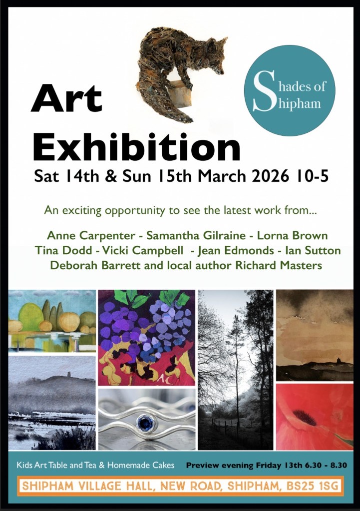 Join us for a glass of wine at the Preview evening on Friday 13th March or enjoy a chat with a friend over a cuppa and a slice of delicious homemade cake any time over the weekend. We are open 10am – 5pm Saturday and Sunday. Meet the artists and browse our latest offerings at your leisure. As usual I will be exhibiting alongside fellow professional artists from the village and local author Richard Masters who has published a new book of short stories. We’ve had some fabulous feedback in the past and we hope this exhibition will inspire you just as much this year.