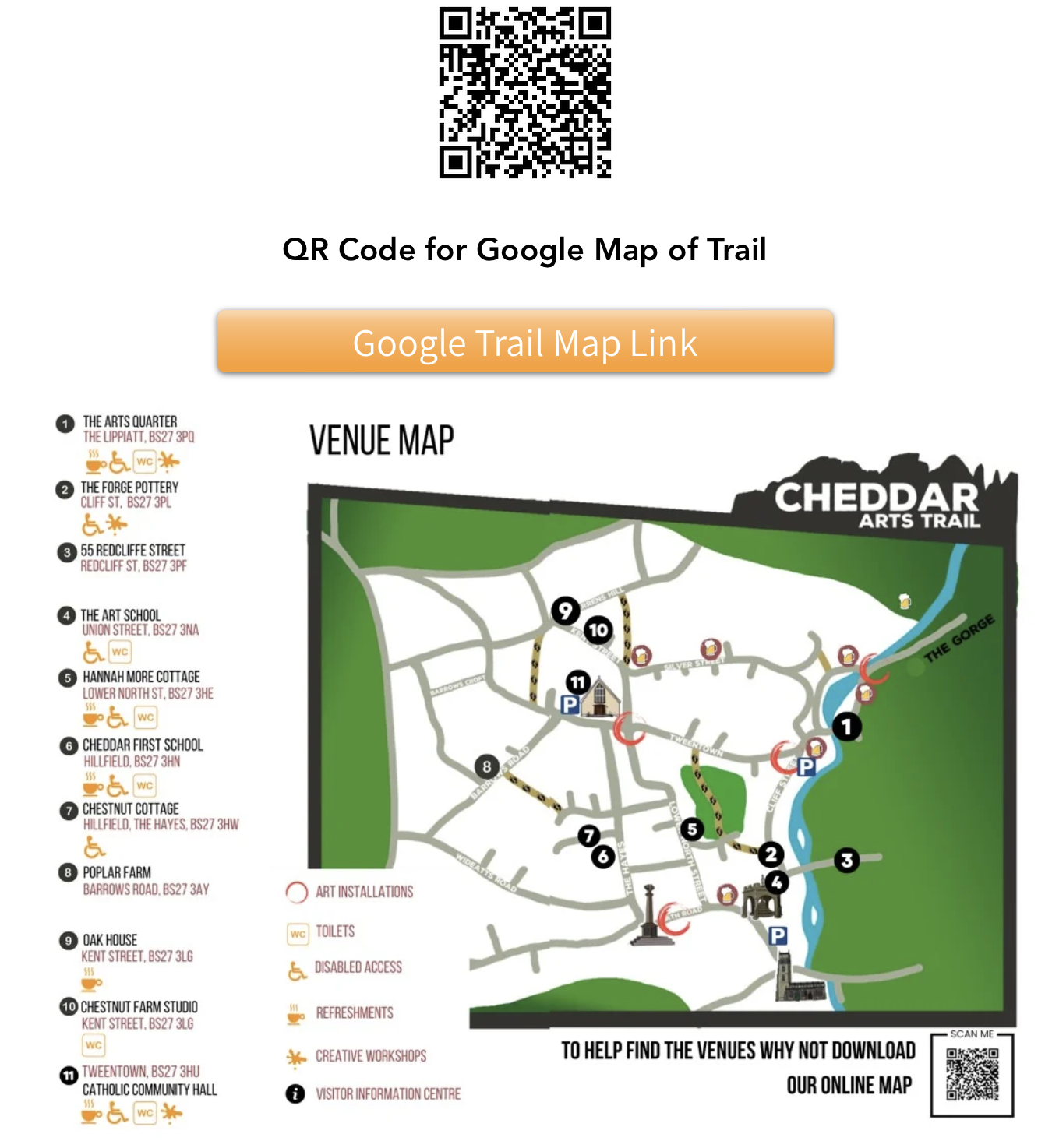 Take a walk around Cheddar village visiting 11 different venues showcasing many different types of art and artisan crafts. Easy parking at most venues with tea and cakes along your route.