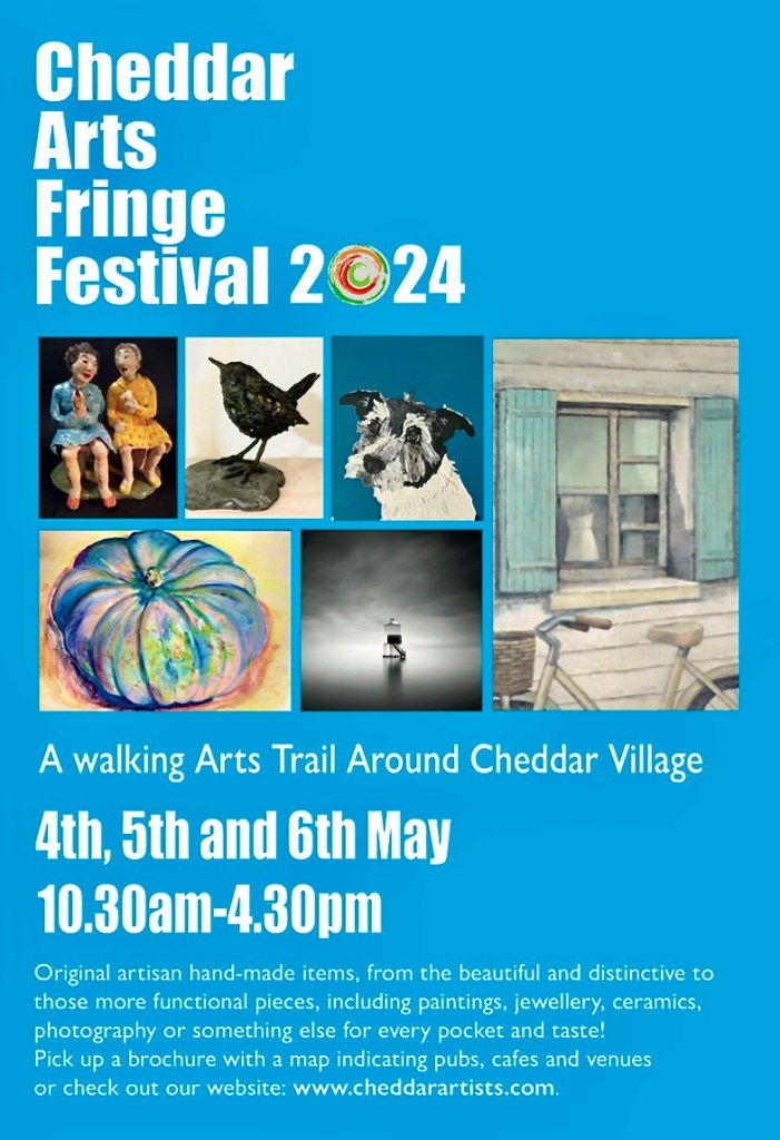 Our popular annual Walking Arts Trail around the village of Cheddar is back! Discover 28 artists in 12 different venues with refreshments along the way. Something for everyone from jewellery, sculpture and ceramics to paintings, photography, printmaking and textiles. Visit the website (https://www.cheddarartists.com) for more information, workshop details and a map or visit me at venue 9 in Hannah More Cottage and pick one up.