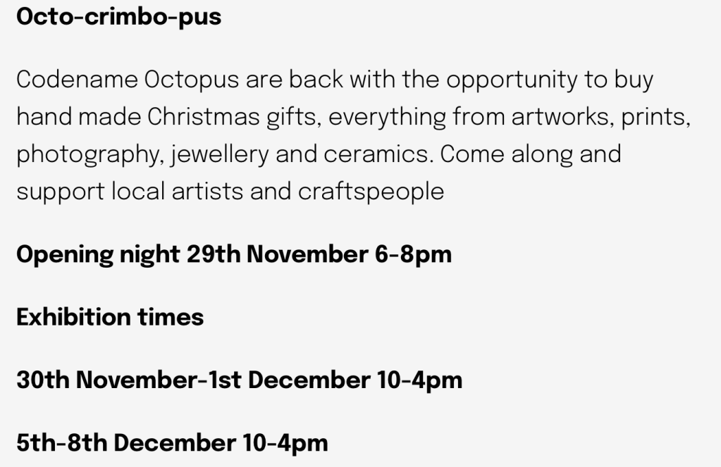 Introducing a Christmas Market as part of the Codename Octopus group of artists and tutors….