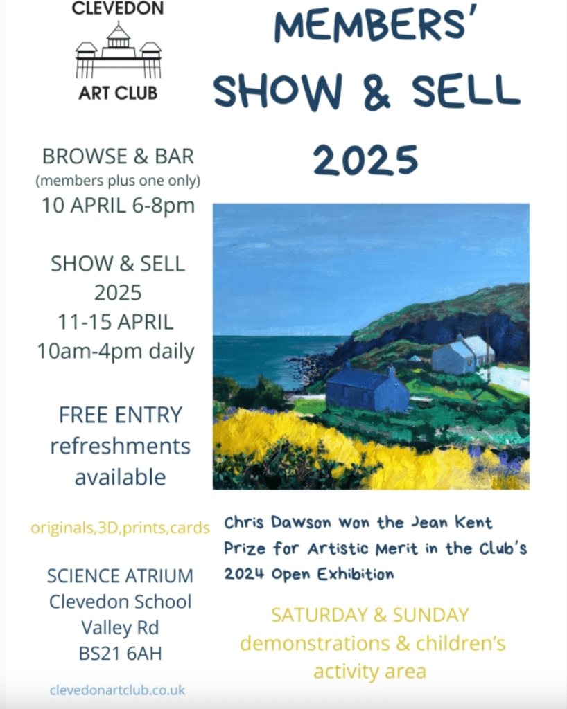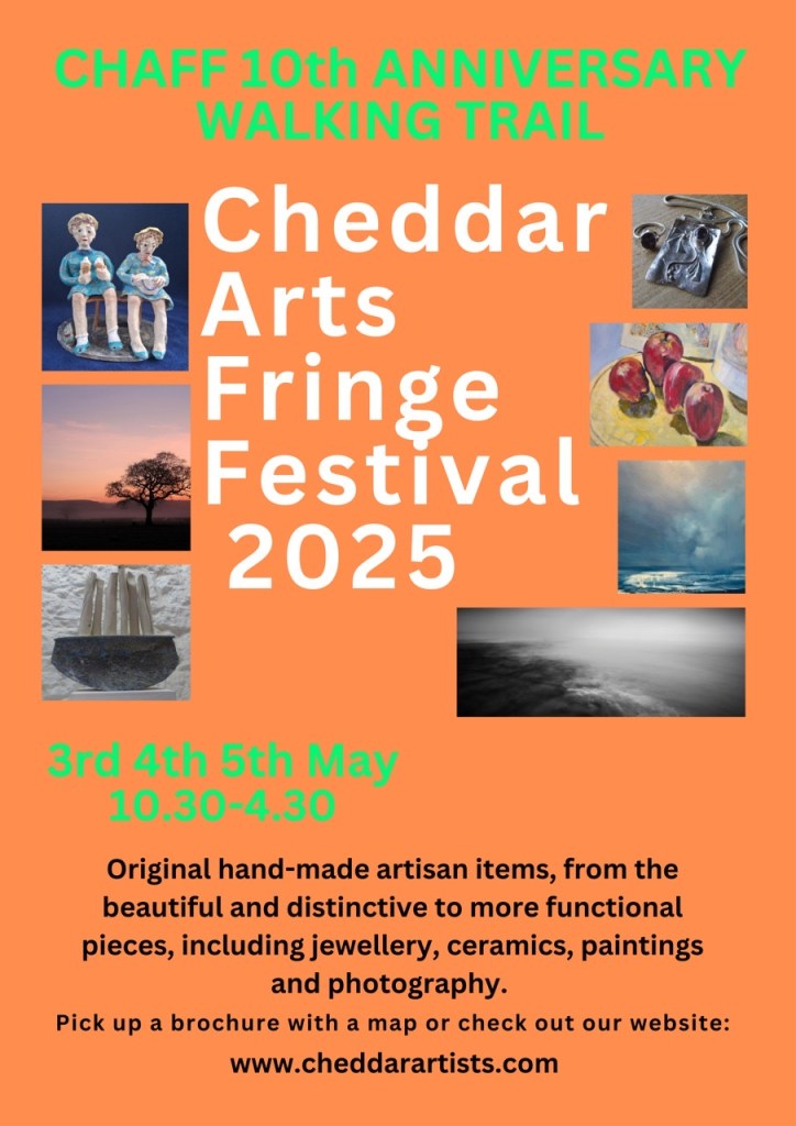 FROM MAY 3rd – I am once again taking part in the Cheddar walking Arts Trail over the Bank Holiday Weekend but also in the North Somerset Arts Week event. More details on the websites… https://www.cheddarartists.com/brochure and https://www.northsomersetarts.org/arts-week-2025