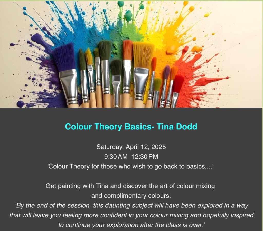 This Saturday I’ll be running a beginners workshop on Colour Mixing with some colour theory thrown in for good measure! More details can be found here https://www.clevedonartclub.co.uk/workshopsclasses where you can book your place.