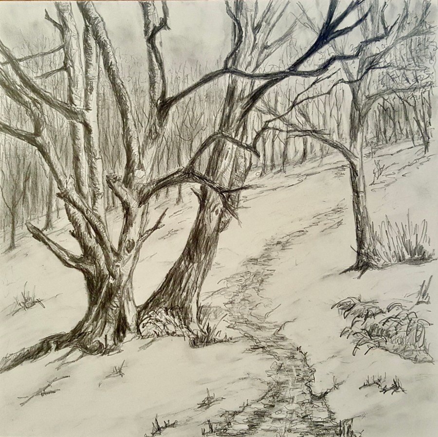 Snow on Mendip IV, Graphite, 8″ x 8″